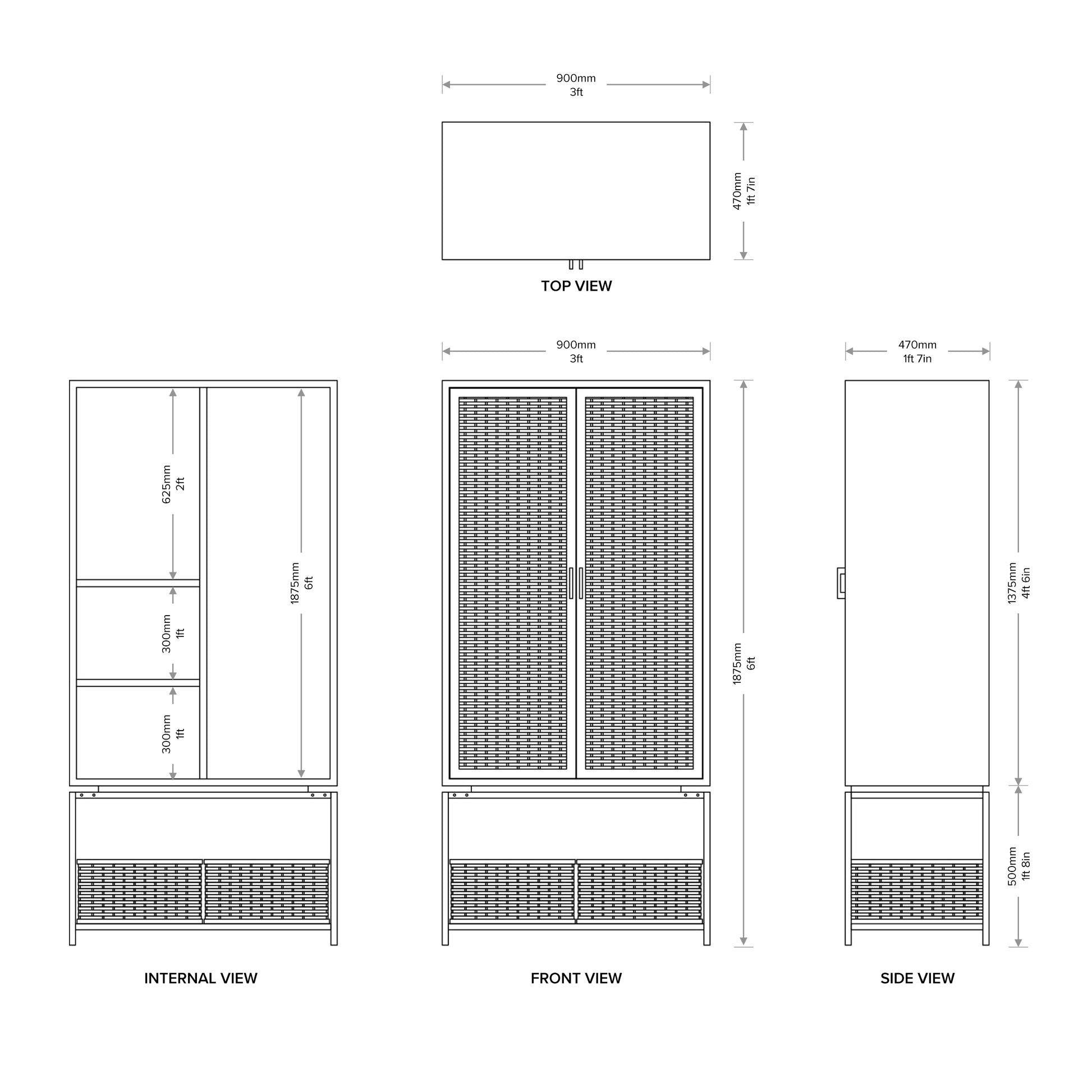 Neatly framed with clean lines and thoughtful shelving, this cabinet highlights organization with a streamlined aesthetic. Eye-catching graphic lines, open space in the bottom frame to sport inclusive Mianzi bamboo baskets, or your own planters; the fresh wardrobe design offers a variety of options for decoration and storage, helping keep the living space uncluttered yet fully functional.