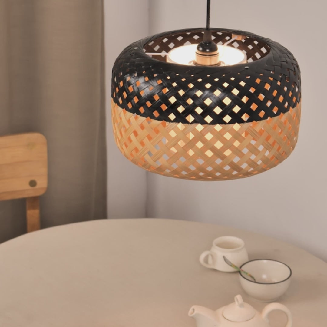 An earthy textured pendant brings an organic elan presence and a gentle warmth to any space. Hang one in a cozy me-time nook, two in the living room above the center table, or three over a dining table or bar counter. Timeless and ethereal, this one-of-a-kind pendant is handwoven from locally grown bamboo.